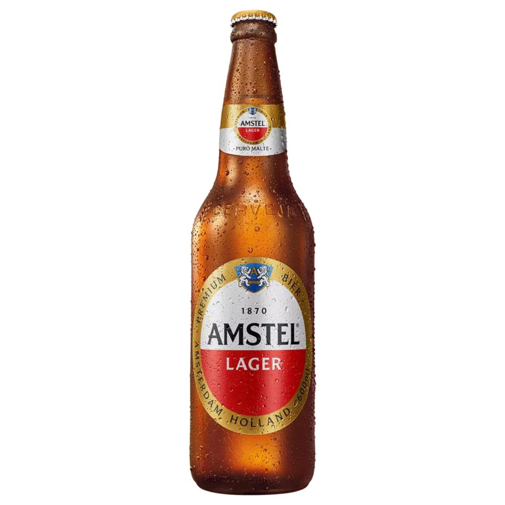CERVEJA DE GARRAFA AMSTEL 600ML (RETORNÁVEL) MÁXIMO 12 UNIDADES.